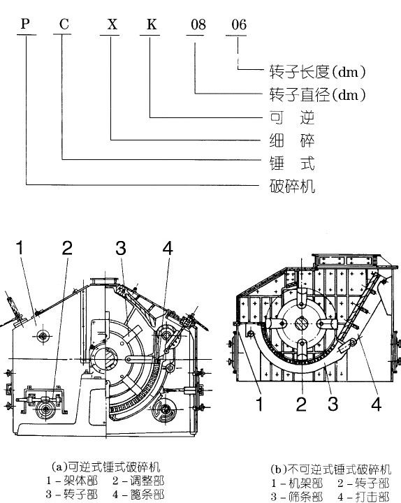 —破碎機(jī)分為左裝和右裝二種裝配形式,選用時(shí)若無要求,則按正常安裝圖供貨。右式裝配是指操作者面對(duì)機(jī)器轉(zhuǎn)子觀察口時(shí),電動(dòng)機(jī)安裝在右手側(cè)的形式,反之為左式裝配。