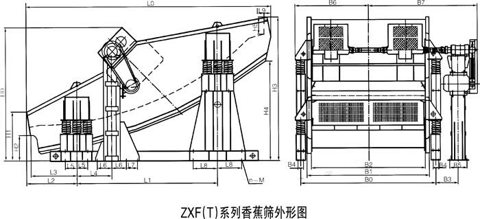 ZX香蕉形直線振動篩基本特性及安裝尺寸