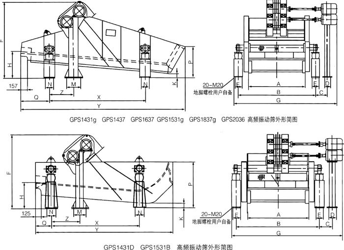 GPS系列高頻直線振動篩安裝尺寸